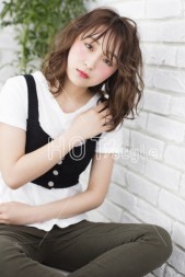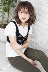 ミディアムの長さを生かしパーマで出したラフな質感とヌケ感のあるシルエットが絶妙のミディスタイル。カラーも透明感のある色みで♪