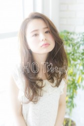 38ミリのアイロンで大きめにふわっとまいてから少し全体にマットスプレーをふって抜け感のある感じにスタイリングしています