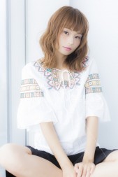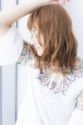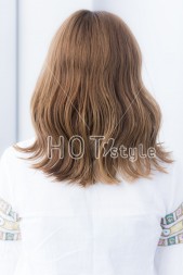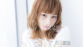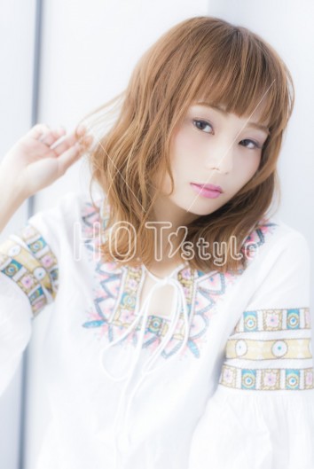 輪郭に合わせて、顔周りの髪のウェーブの位置やバランスを調整してブロー。小顔に見えるように、前髪に少し隙間を作ってバランス良く仕上げています♪カラーはヘルシーシナモンカラー☆柔らかく優しく見える今大人気のカラー♪