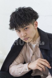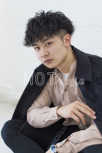 黒髪、ツーブロックに強めのパーマで男らしく!スタイリングも意外と簡単ですよ!いつものスタイルに飽きたら是非!