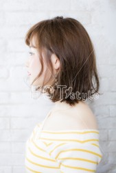 今旬のラフさと甘さが可愛いらしいふんわりガーリーボブ♪首が隠れる長さで結ぶこともできます!トレンドの透明感のあるベージュで重くならない外国人風カラーです。耳かけして柔らかい雰囲気に。