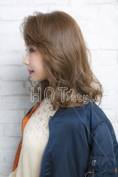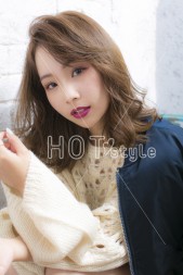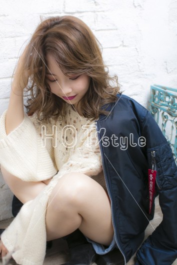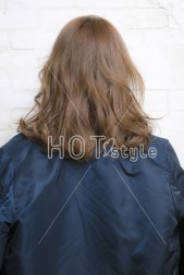 サイドやバックのウエーブゾーンは何度も手グシでドライな質感に。 トップとバックのツヤッとしたストレートの質感が強調されるだけでなく、顔回りが華やかになります。