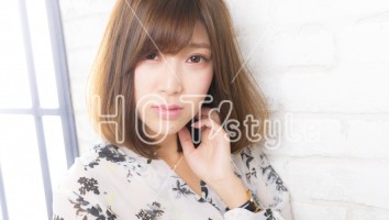 32ミリのコテで平巻きに。髪が温かいうちにアウトバストリートメントでツヤをオン。
