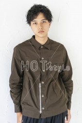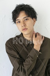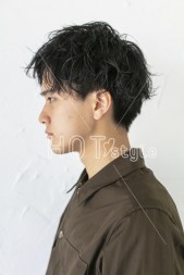 前下がりベースでカット。ツーブロックをさりげなく入れたらトップにパーマをオン。毛先が逃げるようにパーマを。