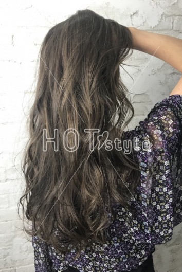 上からしっかりとウェーブが出るようにスパイラルに巻く 毛先のツヤ感をしっかりと出して