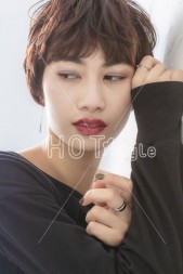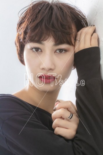 セミウェットなスタイリングにする事で色っぽいショートヘアに