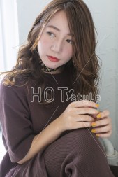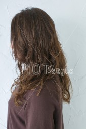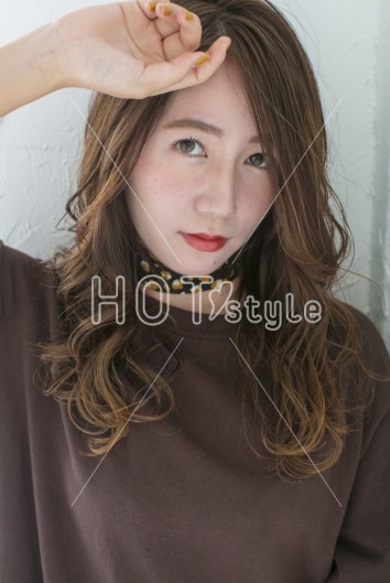程よいAラインとランダムなカールがポイント。ミドルから毛先にかけて強くなるウェーブで、動きのあるスタイルに。