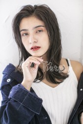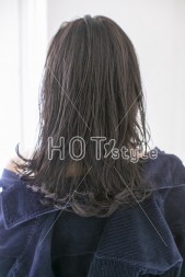 鎖骨丈のAラインのミディアムにカット、首元がくびれるように毛先をスライドで作る。8トーンのアッシュとブルーを混ぜて赤味を抑えたカラーに。