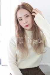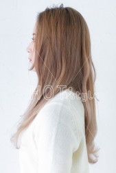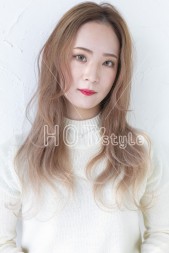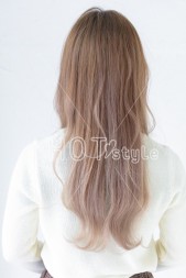 ベースはローレイヤーでカット、センターパートで分けたラフスタイル。ハイライトで毛先をグラデーションにして、根元は10レベルのアッシュとナチュラルを1:1 ブリーチ部分はアッシュとナチュラルを1:2。両方に8レベルのバイオレットを少し入れてツヤを出す。