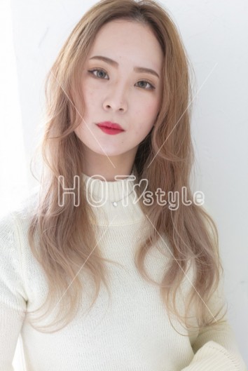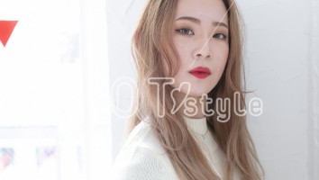 ドライ後軽くブローをする。38ミリのコテで中間からゆるく巻き、顔周りはリバースで。仕上げはヘアオイルをつけて。