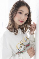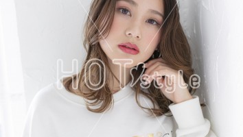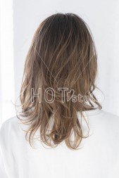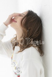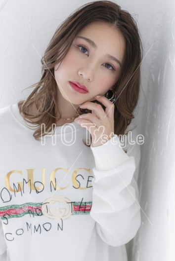 カールアイロンで毛先を外ハネに巻いて、表面のレイヤーは平巻きでふんわりと。オイル系のスタイリング剤で毛先をなじませて束感が出すぎないように散らせば完成。