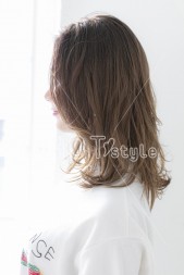 肩下のレングスで表面と顔周りにレイヤーをオン。11レベルのベージュで全体を染めて、くすみを抑えつつツヤ感が出るように。