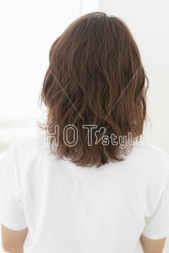 髪の毛をドライしたら、カールアイロンを使って波巻きで全体を巻く。表面はリバースに巻き、シアバターとオイルを混ぜてウエット感に仕上げる。
