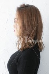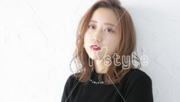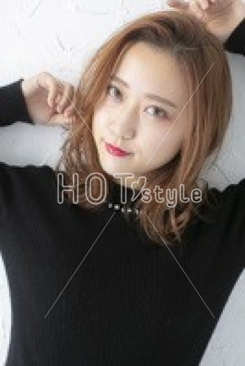 毛先は少し厚みを残し、細かい束感と動きが出るようにレイヤーを入れる。エアウェーブで24mm~32mmのロッドで耳下は平巻き、上はランダムにスパイラル巻き。