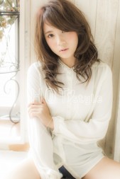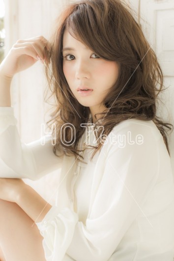 トップから無造作にコテ巻 ♪デジタルパーマなら乾かした後に散らすだけで、無造作くせ毛風も簡単スタイリング!