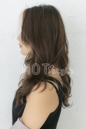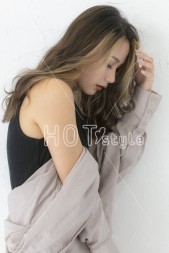 顔周りだけをブリーチで明るくし、ベージュをオンカラー。コントラストで全体は8レベルのナチュラルブラウンで控えめに。