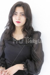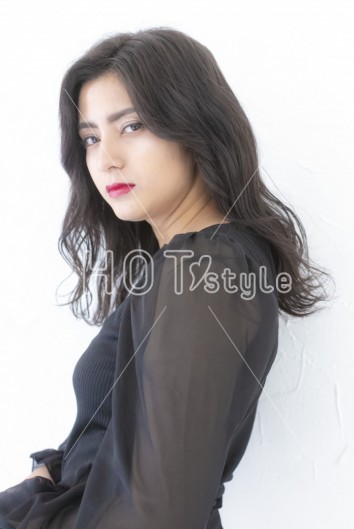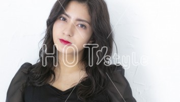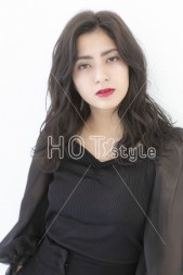 重めに作ったベースにスパイラルパーマをかけたラグジュアルなヘア。ダークアッシュで大人な雰囲気に。