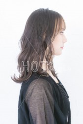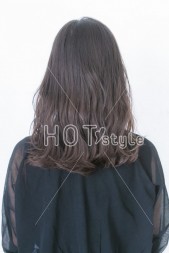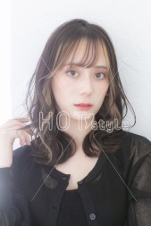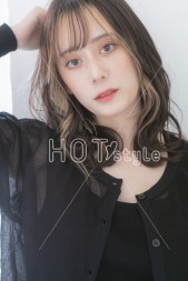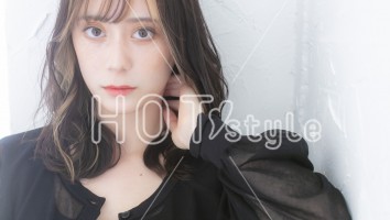 32ミリのコテでゆるくMIX巻き、前髪はアイロンで軽く内巻きに。スタイリングオイルで髪の内側からなじませて表面につける。