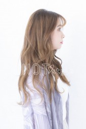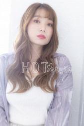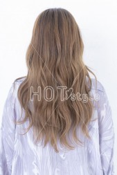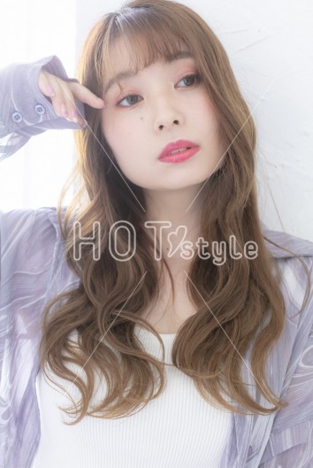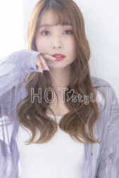 32ミリのコテを使って波巻き、表面をつまんで束感を出して。オイルトリートメントでまとまり感を出す。