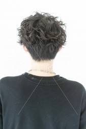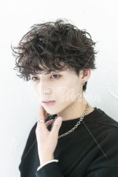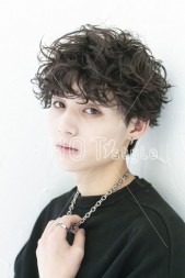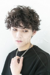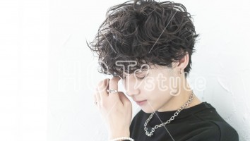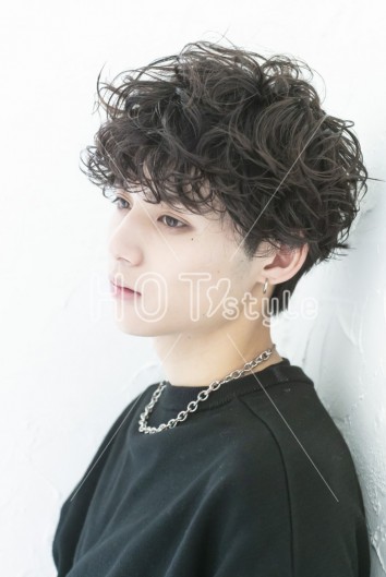 マッシュスタイルにスパイラルパーマをランダムに。セクシーな印象に。