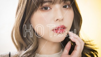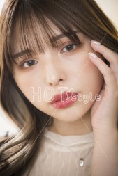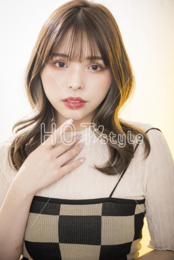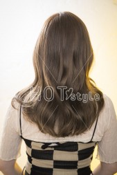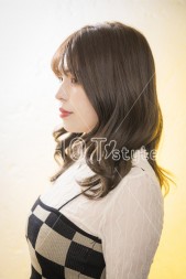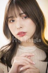 ドライ後、38ミリのカールアイロンで内巻きワンカール。トップはリバース巻きにて崩すことで大きなウェーブになり、グロススプレーをつける。