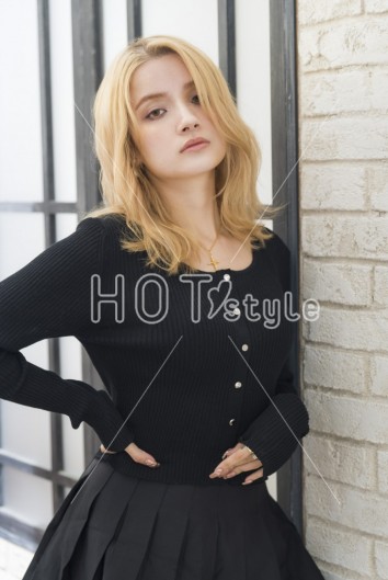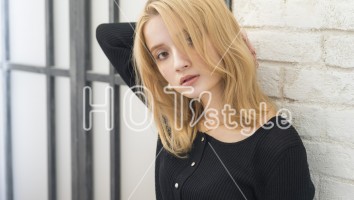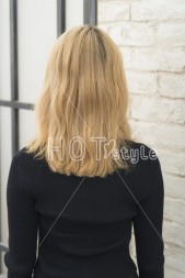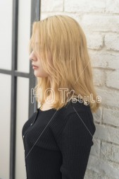 アウトラインに厚みを残したミディースタイル。ブリーチ後、黄味を落ち着かせるヌードベージュを使う。