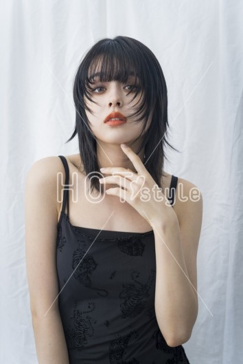 ちょっぴりセクシーなレイヤースタイル。ミディアムでも顔まわりと量感整えておしゃれなデザインに。