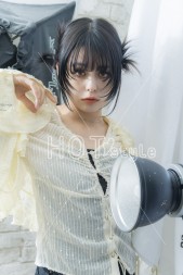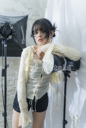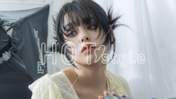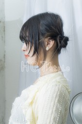 顔まわりのレイヤーを活かしたお団子スタイル。