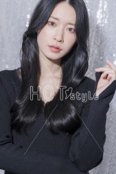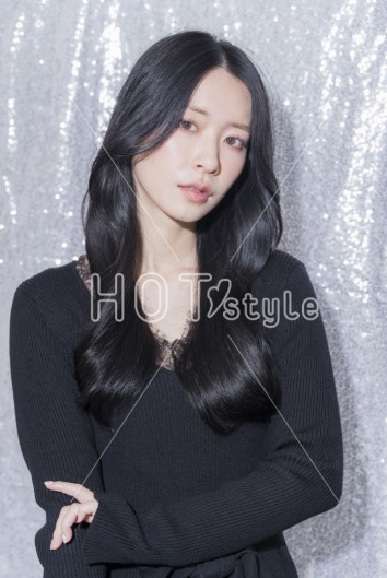 ヨシンモリ巻き(リバース巻き)で仕上げる女神スタイル。カラーはブルーアッシュの低めの色で、地毛の赤みを消す。