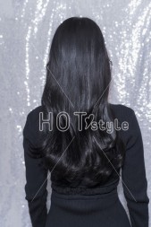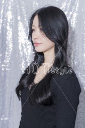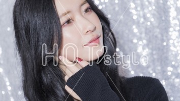 38ミリの大きいカールアイロンでリバースに巻き、ブラシで崩す。マルチオイルでツヤをプラスする。