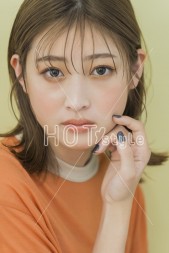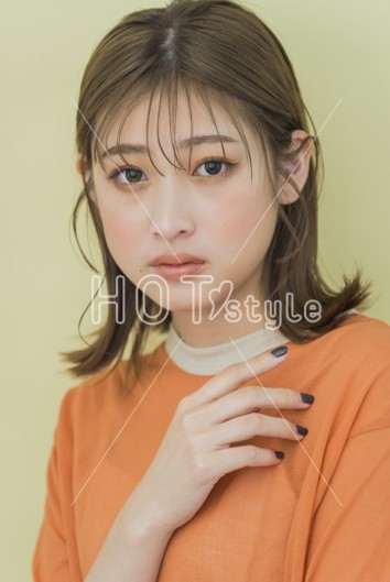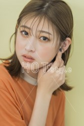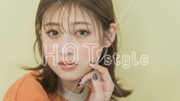 肩につく長さのボブベース。顔まわりにレイヤーを入れて後れ毛を出しやすいようにする。10レベルのオリーブベージュで赤みを飛ばすカラー。