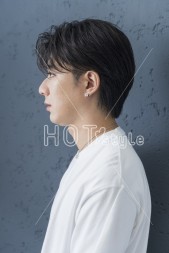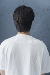 韓国風のウルフヘア。バングの長さを目の下ぐらいに設定し、サイドをつなげる。襟足はレイヤーでつないでくびれ感を出して。