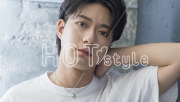 6対4ぐらいで分け、ストレートアイロンを使って流れるようにセットする。ソフトワックスをもみ込んで後ろに流して。