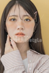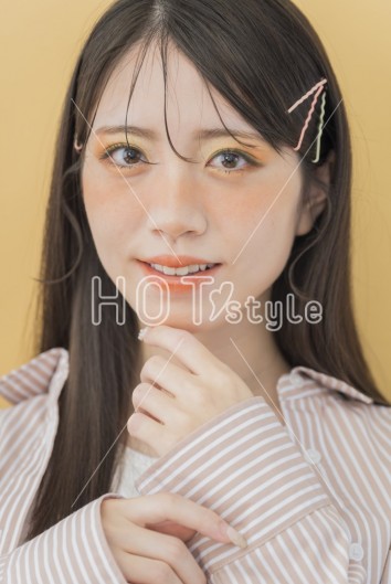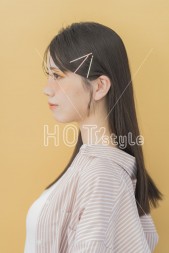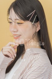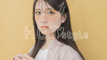 前髪を少しだけ落として、それ以外はカラーピンで留める。バームを使って整える。