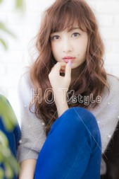 32ミリのコテで顔まわりは外巻きその他はゆるいミックス巻き♪スタイリング剤はムースワックスで動きを出して!前髪は最後につまむように!!